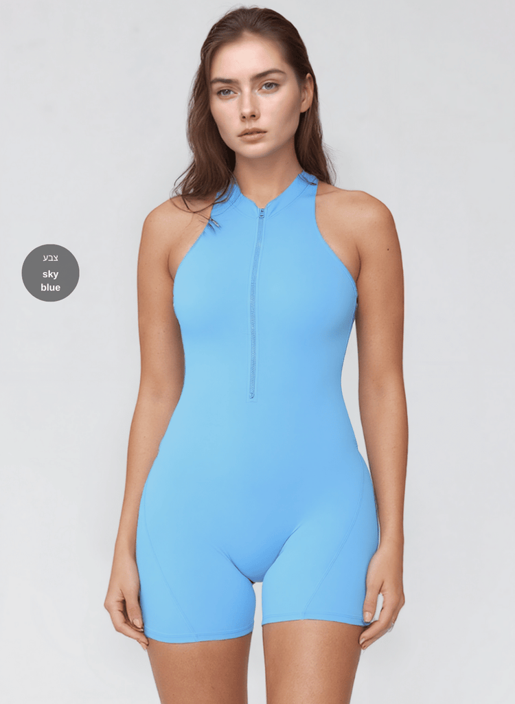 אוברול ספורט קצר לנשים – עם גב חשוף ורוכסן נוח